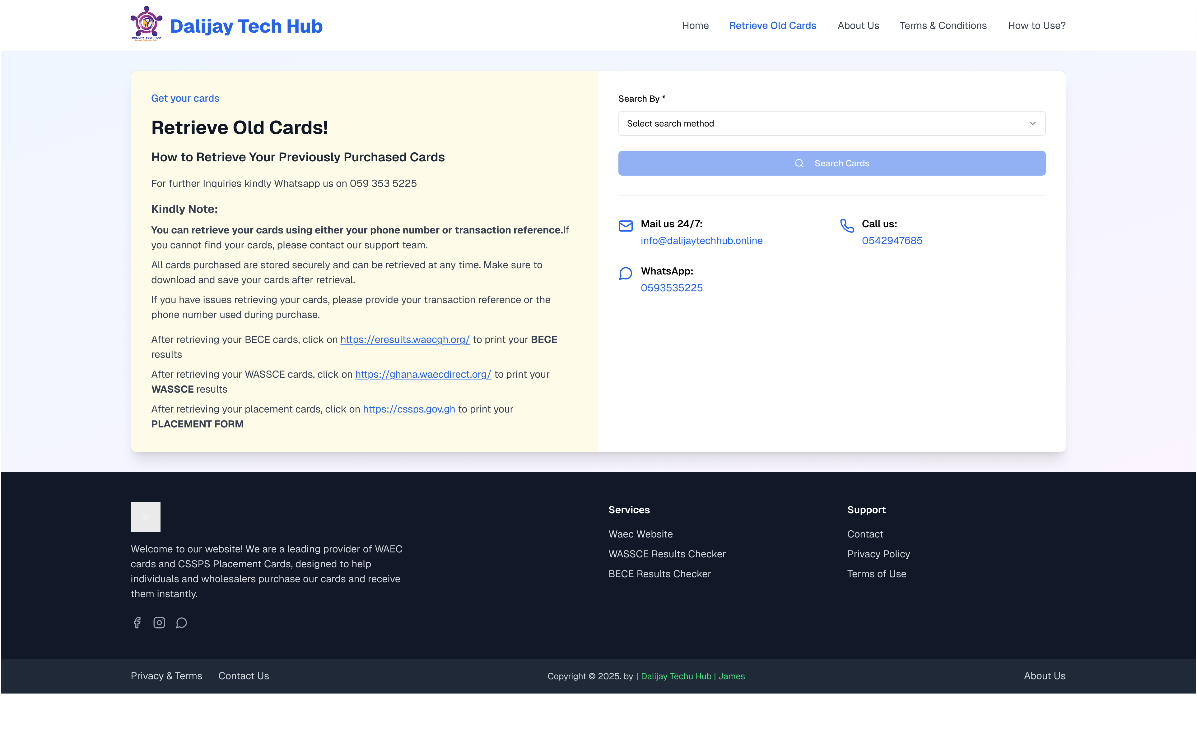 - Main Site: Cards.dalijaytechhub.online