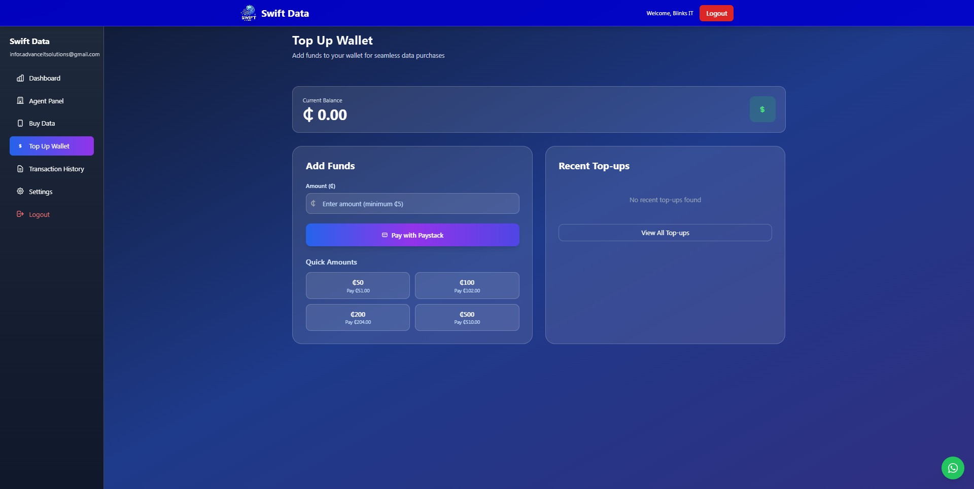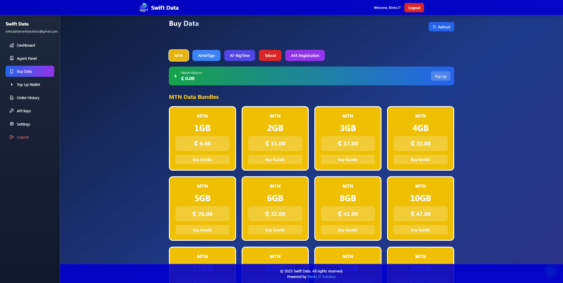 Built a lightweight digital bundles and wallet portal (Swift Data) that enables customers and agents to purchase mobile data, top up wallets, manage accounts, and process transactions. The application combines legacy PHP server-side pages for production workflows with a small Node.js/Express-based development API for local testing and API mocks. Features include phone-based OTP verification, wallet top-ups, transaction history, agent onboarding, admin list & user management, payment gateway test integrations, webhook handlers, and SMS notification flows.
