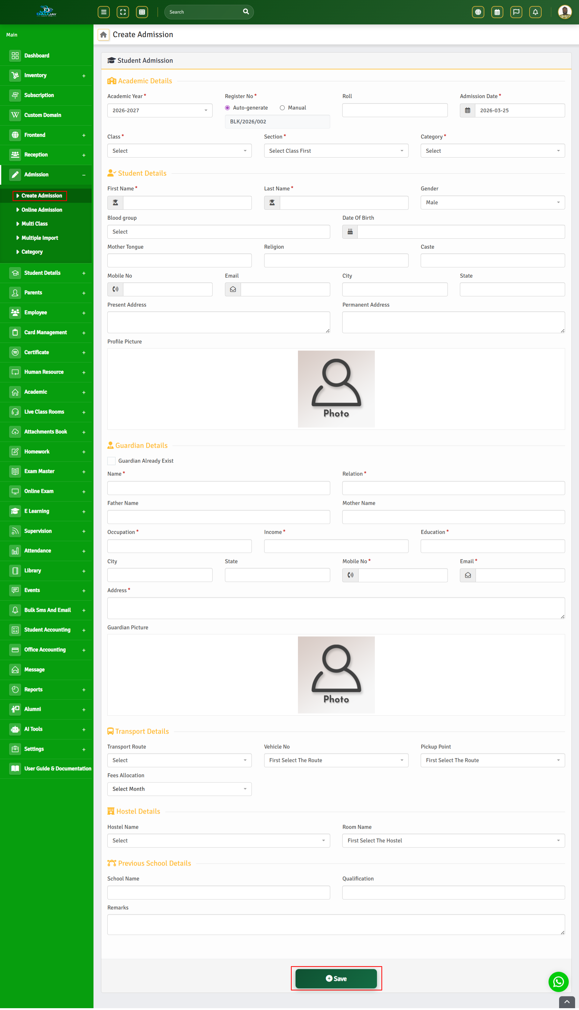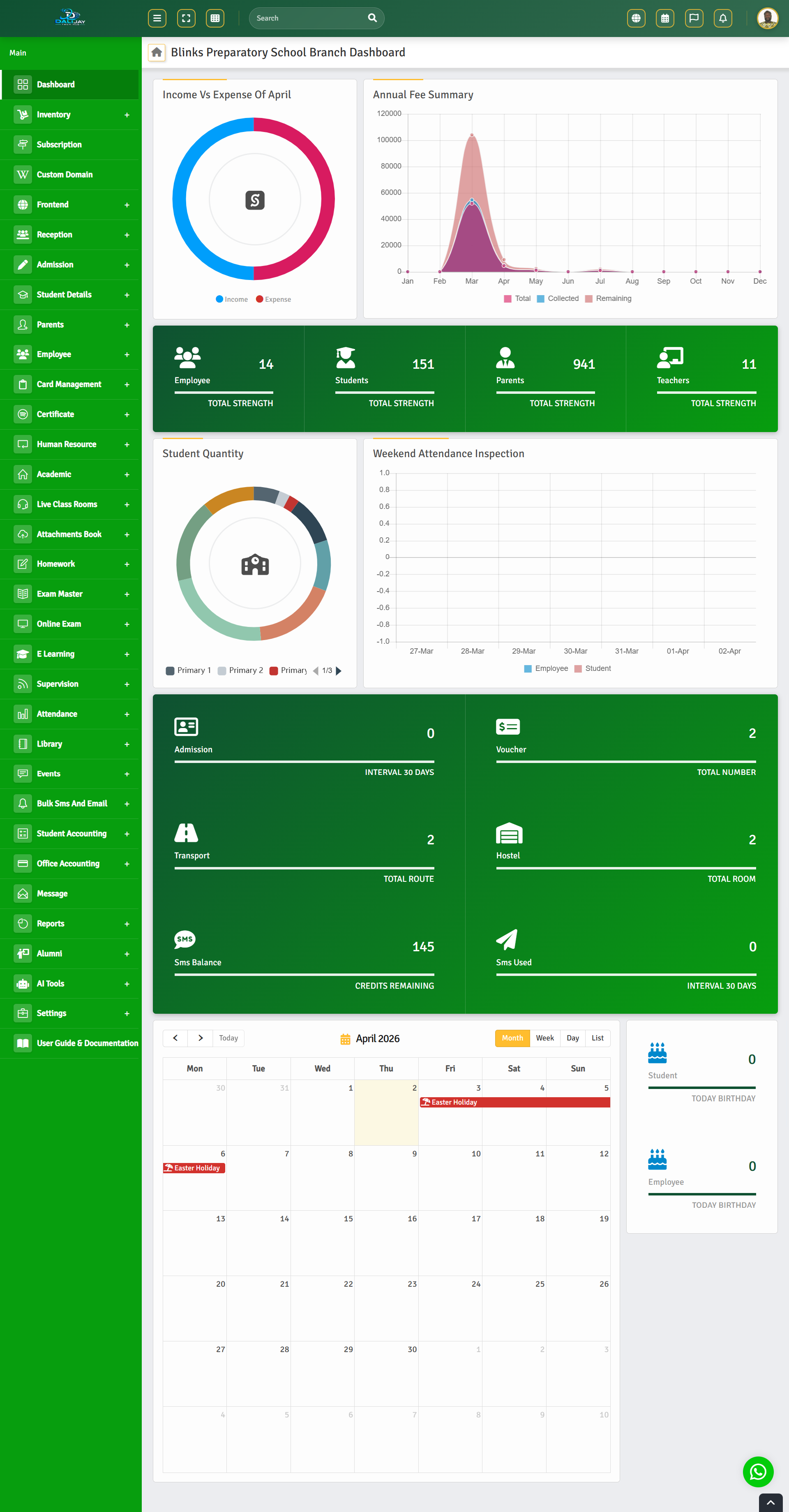 - Core Features:Academic Management, Financial Management, Communication $ Collaboration, Library Management, Transport & Vehicle Management, Inventory & Asset Management, Online Learning Management, Students Management, Exams Records Management etc.